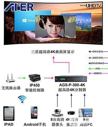 市面各品牌各尺寸的4K高清液晶显示设备均能与ATER 4K画面分割器自动匹配,特别是三星、LG的OLED曲面显示屏更能凸显4K画面分割的独具效果。下面以AGS-P-300-4K为例,来了解ATER 4K画面分割器的“庐山真面目”。