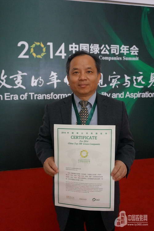 2014“中国绿公司百强”榜今(20)日在广西南宁的绿公司年会上公布,台达集团连续第五年进入绿公司百强榜。自2009年以来台达连年荣获绿百强殊荣,“深绿”产品及运营受到主办方中国企业家俱乐部及道农研究院的高度认可。绿公司年会于4月20-22日隆重举行,台达中国区执行副总裁暨总经理廖庆龙受邀出席,并于“绿增长”圆桌会上担任嘉宾,探讨环境问题带来的挑战与商机。