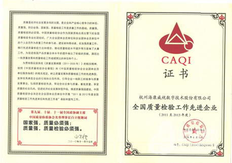近日,中国质量检验协会组织开展了“2011至2013年度全国质量检验工作先进单位和先进工作者”的评审工作,经评定,海康威视从全国数千家优秀会员企业中脱颖而出,荣获“全国质量检验工作先进企业”称号,成为浙江全省安防行业中唯一获此殊荣的企业。
