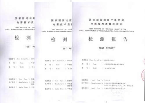 中视迪威SINOLASER品牌激光数字电影放映机通过国家新闻出版广电总局电影技术质量检测所的检测