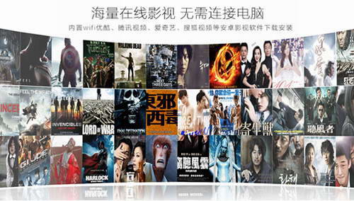 美高G10乐享版高清投影机内置安卓4.4操作系统,实现快速独立上网,数百个电视台,数十万部电视剧免费观看。