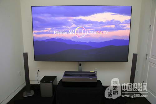 本次发布会中,海信展出了其自主研发的全球首款100英寸DLP超短焦4K激光电视,并将其放置在家居环境中,以最自然的一面示人,给媒体和商家提供了一个近距离融入海信激光电视使用环境的机会。据悉,本款产品已于今年7月份在中国、法国同步发布,除了具有超高清画质体验之外,还配备了具有5.1声效的立体声环绕音响和VIDAA极简智能操控系统。