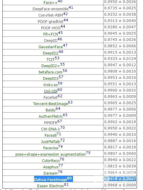 图1 LFW评测结果显示Dahua-FaceImage排名第一
