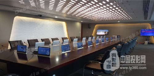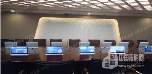 应用于这个项目中的仍然是公司新研发的主打产品16.5寸超薄交互式多点触摸升降一体机,该机型Android/Win7 基于Arm/x86开发,可运行Android操作系统或windows7操作系统,双屏显示 该会议系统配备双面LCD液晶屏幕。外侧屏显示与会人员姓名、职位、会议主题等,可替代传统桌签,显示效果清晰美观,图文并茂,支持自定义,可在后台编辑后直接发放到各一体机终端;内侧可配置触摸屏,从而支持Touchwiz灵动操作界面,实现触控查看会议相关信息(会议内容、图片显示、短消息通知等),签到服务,呼叫服务,投票表决,音视频高清多单元同步显示,自动跟踪,互动性等多领域全方面功能;VGA输出 DeskMedia独有的会议系统终端VGA输出技术可实现任意一体机终端屏显内容输出,使得会议内容共享变得更加简单直接;配备视频矩阵后能形成功能强大,各点屏显内容任意切换的超级视频会议系统。