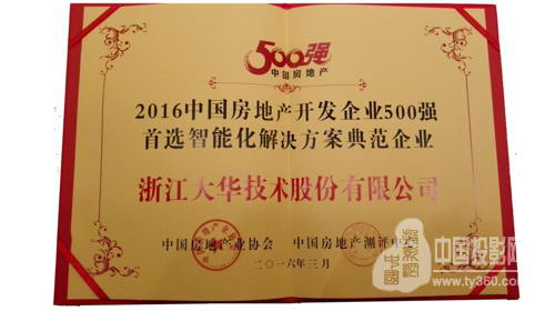 为建筑赋能,大华首获“中国房地产500强首选品牌”