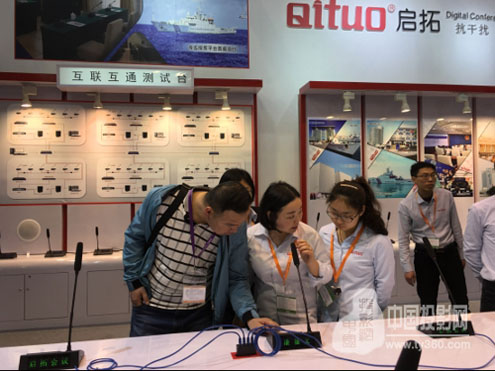 启拓(QITUO)网络互联互通会议系统自亮相广州展以来,为陆续涌入启拓展馆的现场大批参观者带来了崭新的会议系统概念。馆内的互联互通测试台非常直观地展示了网络互联互通会议系统是如何实现多个会议室间的会议互通的。