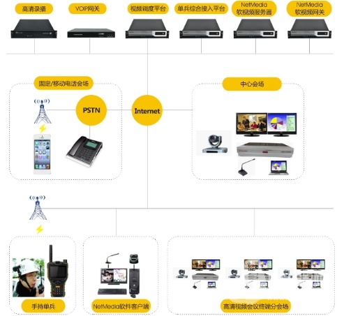 在应急指挥中,可通过普通电话和网络视频终端参与调度。