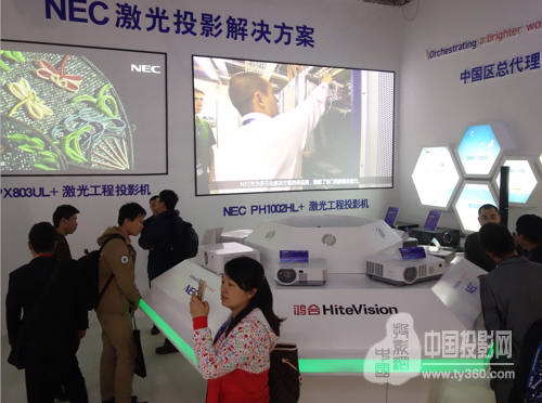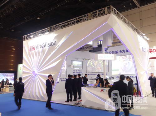 今年的鸿合科技展位无疑是展会中的一道亮丽风景线,无论是极具突破性且充满科技感的展位设计;还是HiteVision全系列激光投影、鸿合代理的多款NEC工程投影机的集中展示,均让参观者眼前一亮。