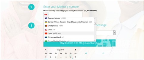 3. 输入母亲的电话号码(包括全世界的国家地区,可选中国);