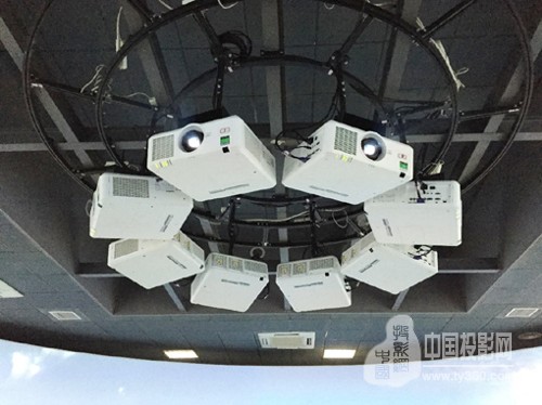 该项目采用360度环幕无缝投影融合系统,整个屏幕高4米,直径12米,之前采用了8台某品牌投影机,但是由于对比度不够,难以满足夜间模拟训练对暗场的要求,因此在投影机前加装了滤光片,以满足对夜场训练的要求,但是由此也带来了亮度衰减等严重的问题,因此需要更换投影机。