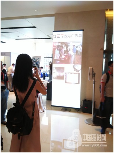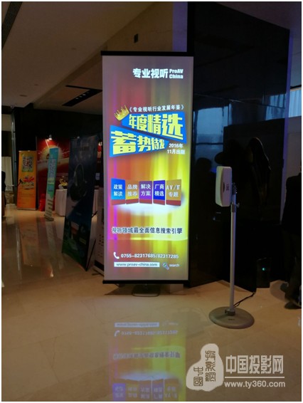 DET德浩还带来了超宽屏超短焦激光商务投影机的解决方案——DET-V1视频易拉宝移动广告看板,采用1.12*2米的易拉宝与DET-V1的组合。DET-V1具有0.25超短焦镜头,分辨率为1920*720,亮度高达3200流明,并充分利用其支持侧立投影的特性,经过简单的制作,可达到一个屏播放多个画面的效果。现场也可见,经由V1播放出来的画面效果十分惊艳,吸引了不少停留驻足的参观者。