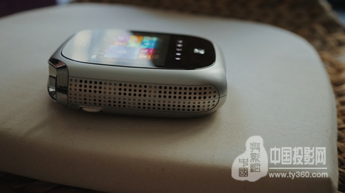 南来的北往的,这就是今天介绍主角的真身了,差不多就是刚好糊你一脸的体积,外观的曲线设计看起来非常的精致大方。正上方明显看见有一块5寸大小的屏幕,这就是它与目前主流的智能投影仪(或者叫无屏电视)外观设计上最大也是最显眼的不同之处了。