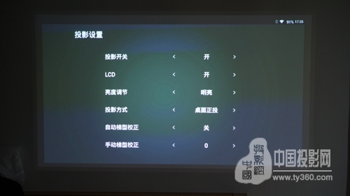 接下来是投影设置,可以看见S3提供的设置内容并不多,支持垂直方向梯形矫正下上各40°,但是并不支持一些高端投影仪的左右梯形矫正功能。当然,个人建议即使是在有左右梯形矫正功能的投影仪使用时还是尽量避免大角度的左右矫正,目前世面上的左右体形矫正都是以牺牲画面精度的软件调整实现的,实用性并不大。