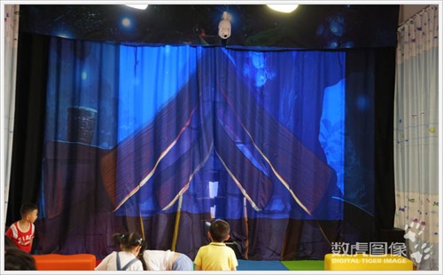 在儿童互动秀《白雪公主》中,不仅虚拟主持人客串恶毒的坏皇后、猎人、七个小矮人等一系列角色,与真人演员饰演的白雪公主完美配合,给现场小朋友带着神奇变幻的故事体验。纱幕投影带来的神奇互动效果,让小朋友们随着白雪公主一会漫步在浪漫唯美的公主城堡,一会逃亡在郁郁葱葱的原始森林,体验亦真亦幻的童真世界。