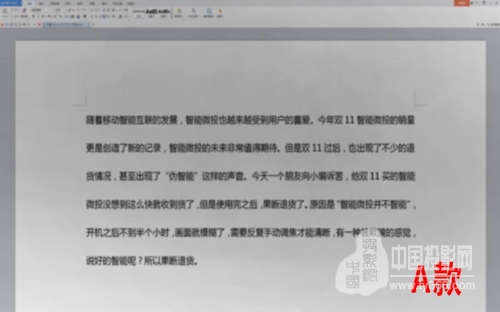 第二步,播放一页带文字的内容,例如Word文档,让屏幕充满文字;