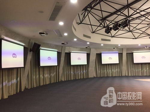 西湖区党建服务中心是一幢圆形玻璃建筑物,方案根据建筑特点设计;位于空间正中的主画面是一个宽6米,高2米的弧形背投屏幕,由2台明基6000流明WUXGA激光工程投影机LU9235配合短焦镜头呈现。