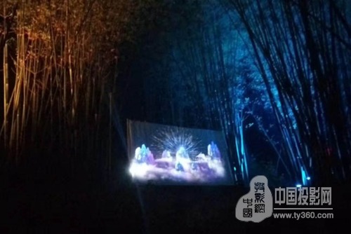 为了使整个项目完美呈现,赢康在近两公里长的游览线路上,配置了数台10000流明到35000流明亮度的科视投影机,将视频影像投映在山体上,竹林中,瀑布上,纱幕中。同时,为确保完美投影的显示效果,除了性能卓越的“科视”投影外,赢康还为投影系统特殊定制了具备防水,防潮,防雷击等专业特点高科技户外投影恒温箱。并通过业内最为先进的英国7th sense媒体服务器,采用美国alcorn v16 pro控制器控制系统,通过精准时间轴,实现了影像在各个投映背景上的同步演出,完美演绎了影音系统精准播控。