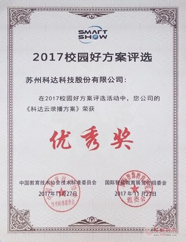 最终,科达“云录播”方案得到评委专家的一致认可,获得“校园好方案”殊荣。
