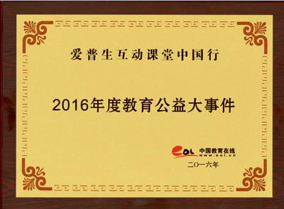 爱普生突破传统投影机的局限,推出的教育互动投影机,荣获中国教育在线举办的“教育‘新’常态——2016中国教育在线年度总评”活动中的“2016年度最佳互动教学投影奖”以及“2016年度中国教育公益大事件”。