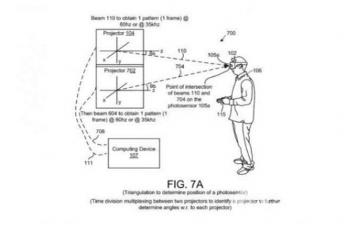 根据名称为“使用多个MEMS投影器追踪头戴式显示器或控制器的光电传感器的位置的系统和方法”的专利描述,该系统的工作原理大致是,多个MEMS投影器产生不同的激光光束,然后多个MEMS反射镜调制不同光束在不同模式下投射,光传感器检测出光束之后,系统计算不同光束到达光传感器所需的时间,从而确定光传感器的所在位置。其中系统中MEMS反射镜是基于利萨如扫描(Lissajous pattern)和光栅扫描( raster scan pattern)实现的。