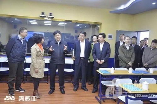 当日下午,调研组参观了奥威亚为该校打造的数字化同步录播室。李楚英校长向调研组成员详细介绍了二十七小学数字化校园建设情况,以及应用数字化平台进行教学、校本教研、资源共享的情况,并给调研组成员展示了二十七小利用数字化平台建立起来的教学资源共享平台。