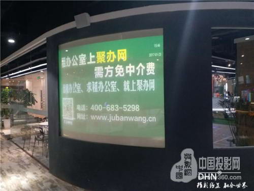 DHN DM907超短焦激光投影机再次发力,助阵常州路劲·又一城激光机背投项目,现场为转角处130寸弧形背投屏,屏幕为玻璃贴膜。原来使用市面上某品牌激光短焦机进行投射,但是客户播放内容为广告,对下方投放热线等广告内容的清晰度不满意。
