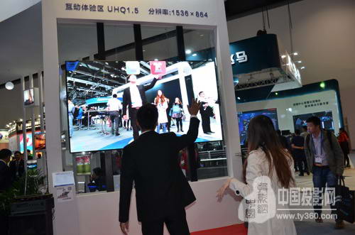 如果说经典小间距产品及方案展示是洲明的“过去”,那么接下来的创新展示就代表着洲明的“未来”。副屏部分,洲明展示了行业尖端的标准分辨率小间距LED显示屏UHP0.9,并搭载体感互动软件,允许观众通过肢体语言动作与高清大屏之间实现趣味性的互动,现场更是吸引了众多观众的亲身参与。