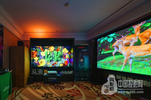 除了Vivitek(丽讯)家用投影机产品,本次网庭企业机构还带来了时下最热门的“客厅影院”以及“类影吧”的概念,“客厅影院”是指在客厅这个独特的场景下营造出“影院”的氛围,同时又不影响客厅的独立功能,针对不同家居环境,客户可以选用小投距产生大画面的Vivitek(丽讯)短焦全高清家用投影机DH559ST,对品质有着更高要求的客户,可选用HIFI级准高端家庭影院投影机H5095享受视觉盛宴;“类影吧”则是以甲谱品牌为主的专业影吧硬件整套解决方案,如Vivitek(丽讯)针对影吧市场开发的机型DH558,配合甲谱8盘位标准版服务器、甲谱高清播放器、甲谱影吧运营管理系统等组成。