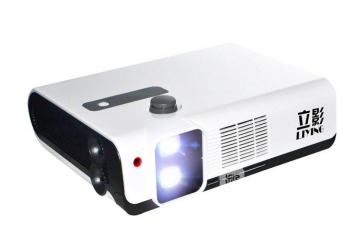 【点评】:我觉得立影3D投影仪的一款非常适合家用的投影机,无论从技术上还是操作上,暂时都没有能取代它的投影机(除非的偏振式3D双投影_两台投影机搭建);技术上是影院的偏振式3D技术,非主动式快门,不闪眼,无辐射,眼镜不充电,非常适合家里有老人小孩的家用客户观看;在操作上更加简单了,将装有3D电影的硬盘接入到播放器,并连接至投影,即可一键点播,合适没播放电影基础的人能快速上手。