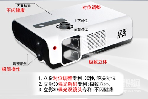 偏光式3D投影机推荐:一般的偏光式的3D投影仪都是需要两台投影仪叠加,在镜头前配上偏振片和对应的眼镜,并且有时候也需要利用软件来进行两台投影仪的几何矫正,在播放上必须依赖电脑+软件的形式播放,操作较为繁琐。目前立影LDCP500/LDCP500这两款双镜头偏光3d投影也能达到同样的3D效果,下面给大家推荐下这两款新型投影仪: