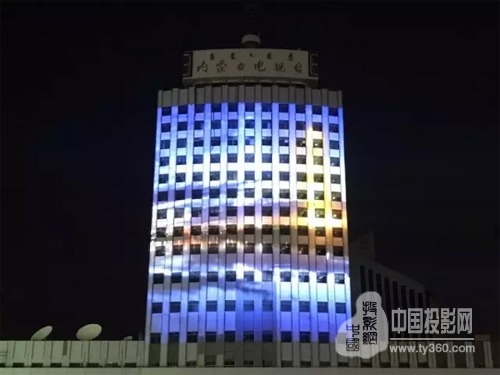 夜幕降临,以整座电视台大楼为背景,所呈现出的记录着内蒙古自治区多年来历史变迁的印记,无声地上演着内蒙古人民锐意进取,开拓创新的新面貌。