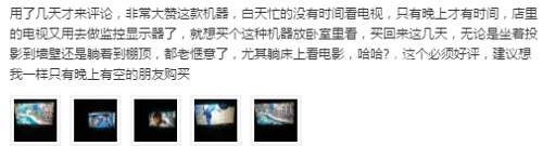 网上这么多好评其实也是刷出来的,你买了之后发现有质量问题什么的就要协商退货,退货的运费也要大几十,而往往此类投影机才300来块,人们都会难得折腾。再者就是经协商后好评退款双方难得轻易了当避免麻烦,最后就是常见的好评晒单返现送礼了,这也是电商比较擅长的营销手段。