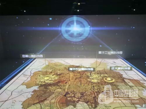 湖南省长沙市高新区管委会展厅cave展项,16台7,000流明松下激光工程投影机采用正投、融合的方式把湖南省鸟瞰图搬到了参观者的眼前。该数字沙盘主要用于展示长沙高新区各项丰硕的创新成果以及未来的宏伟蓝图,对投影机的效果要求颇高。松下激光投影机不负众望,凭借其卓越的产品性能,营造出多个极具视觉冲击力的场景。宏伟壮阔的产业规划布局,未来感十足的数字影像,获得高新区领导以及参观者们的一致好评!