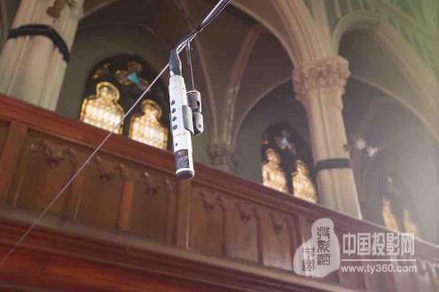 Anderson和Schwarz的话筒解决方案包括悬挂在整个教堂的10个固定话筒。其中包括4个悬挂在主观众席上方、高于二楼包厢的MKH 800 TWIN话筒。它们排列成了一个正方形。一对MKH 800话筒和一对MKHC 8020全指向话筒,它们连接到MZE 8120延长杆,形成了第二个、较低的正方形,悬挂在包厢下面。Anderson解释道:“这些话筒形成了所谓AMBEO立方体”。另有一对MKH 8020话筒安装在前排观众上方的横杆上,组成A/B制立体声话筒对,直接对着舞台。