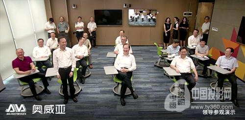 任学锋书记参观了奥威亚录播系统的全自动跟踪技术和交互录播的互动演示,重点考察了公司多项国内首创的核心技术。