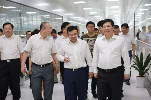 董事长傅利泉陪同徐立毅市长一行参观了我司智慧物联网产业园的生产车间,简要介绍了园区实际情况:园区(一期)占地262亩,建筑面积约29万平方,今年6月份我司智慧物联网产业基地正式投入生产,5000余员工。园区作为高端制造产业基地与现代化物流中心,生产高品质、高技术含量的智能产品,并提供一流的服务,保持在行业的领先地位。徐立毅一行边视察边听取汇报,当了解到园区视频监控、存储、显控等系列化智能产品的实际生产情况和科技向现实生产力转化的成果之后,他肯定了我司重点发展“智能制造”的战略思考和做法,对我司在科技自主创新方面取得的成绩给予高度评价。