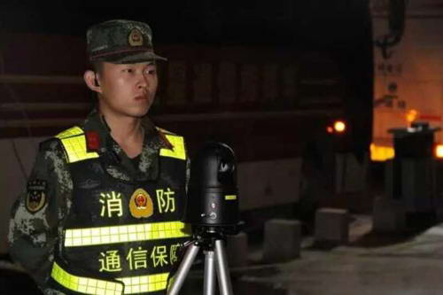 图9:消防官兵与4G高清布控球一起驻守在固定点位