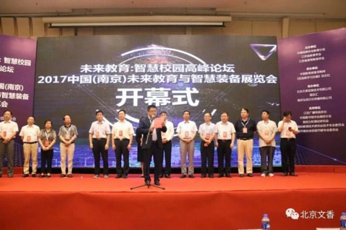 开幕式于9月19日9:00开始,本届开幕式由中国信息协会教育分会副会长兼秘书长周长春主持,中国信息协会会长何翠芹,教育部科技中心主任李志民,国家信息中心信息化和产业发展部主任、中国智慧城市发展研究中心秘书长单志广,江苏省高等教育学会会长丁晓昌,江苏教育学会会长杨九俊,中国信息协会教育分会会长步德迎,江苏省电教馆馆长、江苏省教育信息化中心主任吴胜东等领导,以及来自全国各地500多位代表出席了开幕式,现场座无虚席。北京文香总裁朱玉荣作为独家冠名企业代表出席开幕式并致辞。