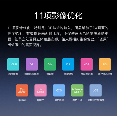 酷乐视R4,使用了11项影像优化,其中特别是HDR的加入,明显增加了画面的亮度范围,有效提高画面对比度,不仅使画面色彩饱满质感更强,细节之处更具立体和层次感,给人栩栩如生的感觉,还原出你眼中的世界!