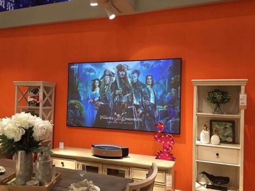 胡震宇说,激光电视从形式到体验已经很接近影院,想象一下,把卖到每家每户的投影仪都算一个影厅,那坚果就是一个院线。