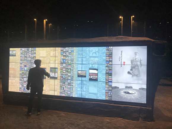 此展馆采用了49寸的液晶拼接屏,3X6的规格实现了超大画面显示;外设红外框触控增强了人与机的实时交互。