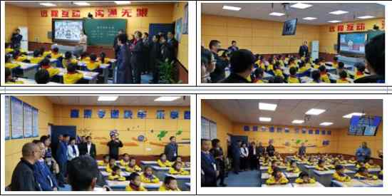 8日上午,与会代表一行先来到了吉安县敦厚镇高塘小学,兴致盎然地观摩和体验了一堂通过一拖二“专递课堂”模式进行的音乐课。此次课堂由一个主讲教室、两个听课教室组成,主讲教室设置在高塘小学,听课教室则设置在对门小学的禾埠小学。依托于华平的在线课堂系统,高塘小学和对门小学、禾埠小学的教师、学生,可以像在一个教室里一样,进行教学和互动。