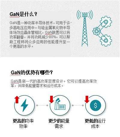 GaN可处理更高频率和更高能效的电源,与硅组件相比,它可以在尺寸和能耗减半的条件下输送同等的功率。由此便可以提高功率密度,帮助客户在不增大设计空间的同时满足更高的功率要求。