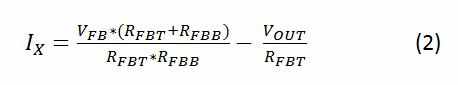 xt设定为50kΩ。FB节点可以应用基尔霍夫电流定律,您可以使用等式2计算电流IX: