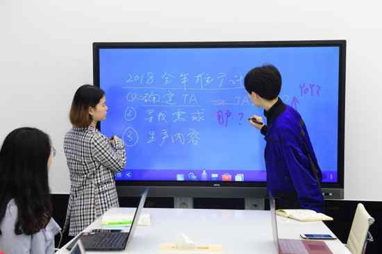 有明基会议平板在侧,想到什么直接书写下来,既能立刻呈现过讨论组成员,又可以各抒己见,协同润改,多人触控书写完成接下来的打磨,把最开始的灵感放大再放大,最终凝聚为众人一致认可的方案。
