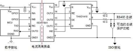 隔离可防止系统两个部分之间的直流电(DC)和异常的交流电(AC),但仍然支持两个部分之间的信号和电能传输。隔离通常能够阻止电气组件或人员遭受危险电压和电流浪涌的伤害;用于保护人员的隔离称为增强型隔离。隔离可防止节点之间进行长途通信时形成接地回路。隔离还允许远高于RS-485标准所推荐的节点间通信接地电位差变化率。