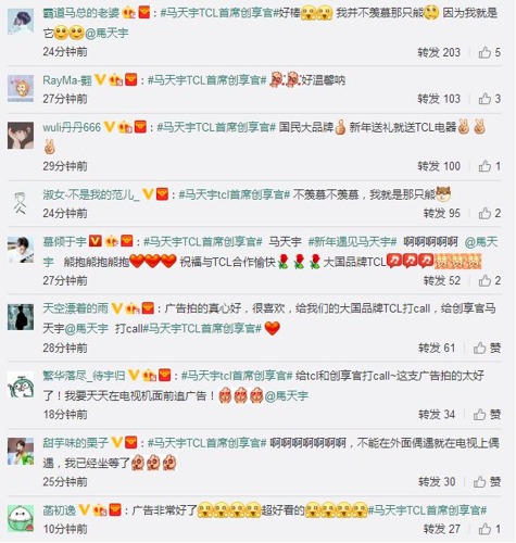 “以前用的家电很多都是TCL,但从没注意过家电什么牌子,但天宇代言后,就对TCL有了执念,也开始向周边的人推荐。”