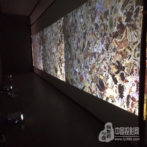 展出作品在展厅的中央用9台NEC M303HS+高清投影机背投打造出了一个沉浸式通道,将古板的艺术作品用活泼的视频方式呈现出来,重塑了传统的艺术沟通与交流。作为强有力的艺术载体,呈现出巨幅斑斓画面得益于NEC M303HS+非凡的色彩校正技术,使得多台投影机的色彩能保持一致,展现的画面均匀而流畅。其拥有着3000流明的高亮度,完全可以满足美术馆、博物馆等场所使用。并且在1920x1080全高清分辨率与9000:1的高对比度等规格参数之下,为参观者提供了清晰、鲜亮、艳丽的投影效果。