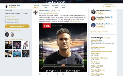 未来,大国品牌TCL将与内马尔联手