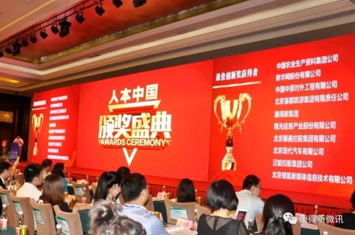 2017年5月26日,康得新荣获人本中国”中国最佳人力资源开发与管理创新奖“。这场论坛由国家发改委直属中国人力资源开发研究会主办,是目前我国人力资源领域最高规格、最具规模效应和影响力的学术行业盛会。康得新与海尔、GE、国家电网、中国运载火箭技术研究院、北京现代、雀巢等知名企事业单位共获殊荣。大奖的含金量自然不必多说啦!